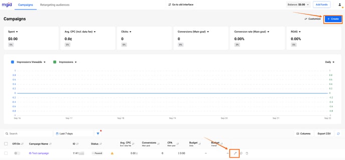 - Crea una nuova campagna pubblicitaria o modifica quella esistente nel dashboard.