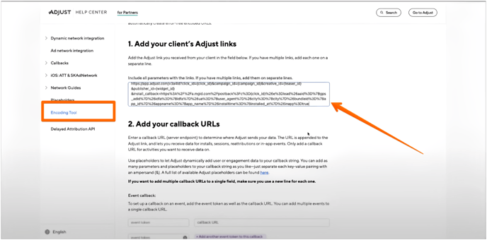 3. Incollare quindi il link Adjust nel primo campo dello strumento Codifica.