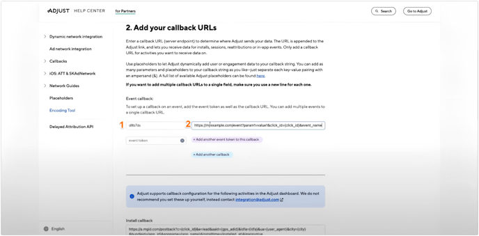 4. Incollare il token dell'evento nel primo campo e l'URL di callback nel secondo. Utilizzare il link ottenuto per tracciare gli eventi in-app.