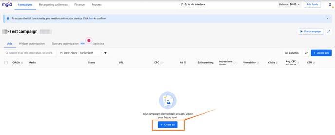 - Navigate to the creative creation form in MGID Ads by either creating a new ad or editing an existing one.