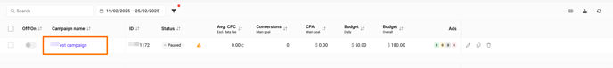 Click a campaign name to open it and navigate to the individual campaign interface.