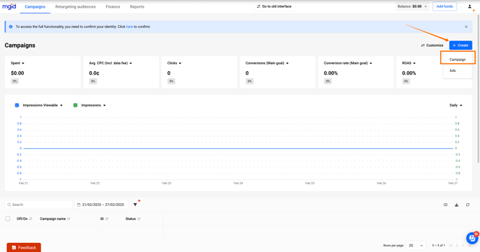 - Click Campaigns and then Create.