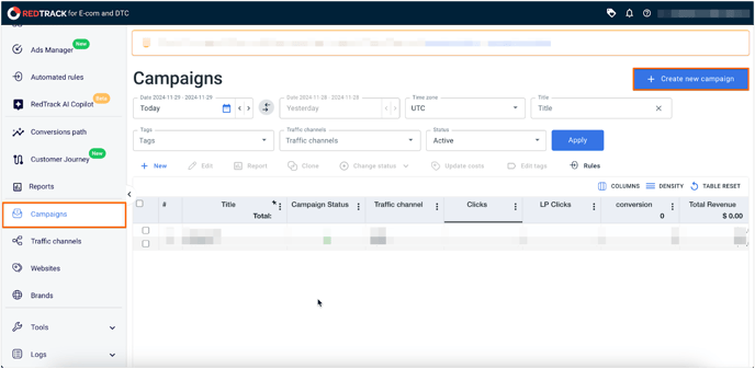 1. Log into the RedTrack tracker panel.