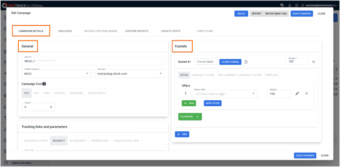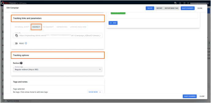 RedTrack Tracker Dashboard Settings