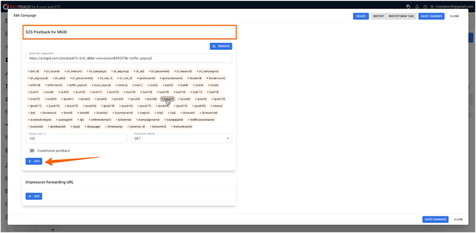 4. If you need to track more than one event, postback links must be configured additionally at the campaign level. The postback link set at the global level in the Traffic Source will be pulled in here.