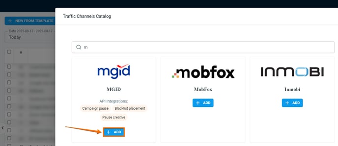 3. Find the MGID template in the search and click Add.
