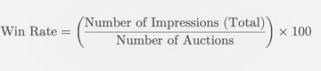 For example, if your ad participated in 1,000,000 auctions and won 50,000 impressions, the win rate would be:
